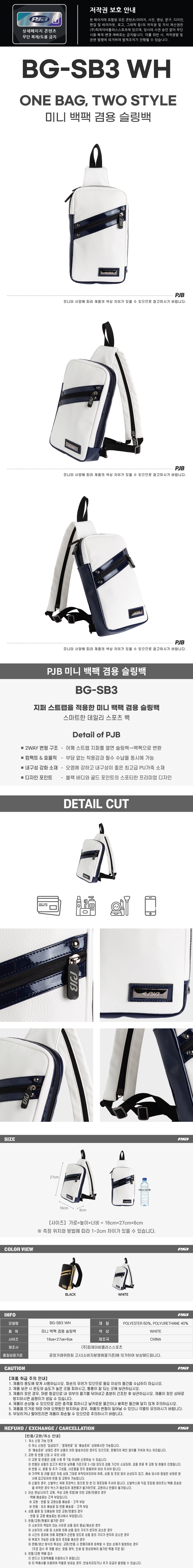 미니 백팩 겸용 슬링백, BG-SB3 WH